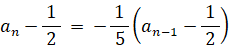 an = −1/5 an−1 + 3/5 は次のように変形できる。