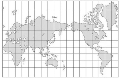 メルカトル図法では、赤道付近のみ 面積・距離・方位・角度 すべて正しく表示されています。 横メルカトル図法では、中央の経線周辺のみ 面積・距離・方位・角度 すべて正しく表示されています。