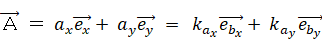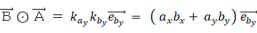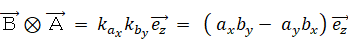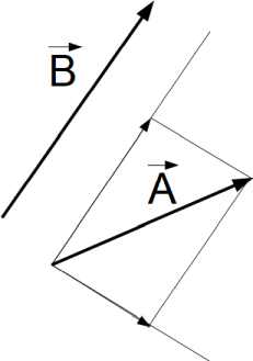A に対して B を作用させて内積や外積を取るには、まず、B の方向とその垂直方向との新たな直交2次元空間の基底を設定して、A を B の方向とその垂直方向に分解します。