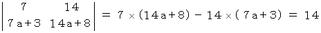 と ( 21 ,21a+11 ) の4つを頂点とする平行四辺形の面積は 14 である。a は 整数だから、4つの点はすべて格子点になる。