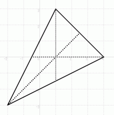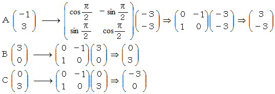 です。この3角形を、 重心を中心として反時計回りに90度回転させたときの3頂点の存在位置は、 それぞれのどのようになるでしょうか?
