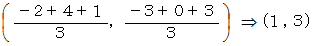 最後に、 重心が元の存在位置に戻るまで、 三角形を平行移動させます。 すると、 それぞれの頂点の存在位置は、 次のようになります。
