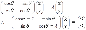 固有値を λ、 それに対応する固有ベクトルを( x ,y )とすると、