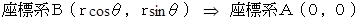 固有の座標系Bを持っているB君と固有の座標系Aを持っているA君が同じ場所にいて、 そこを中心にして等速円運動している物体がある。 ただし、 A君だけはその物質が常に真正面になるように自転しています。 物質の位置ベクトルを座標系Bから座標系Aに座標変換すると、 次のようになります。