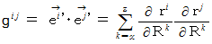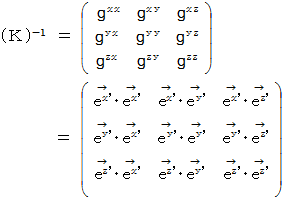 曲線座標系の双対空間の計量テンソル ( 反変計量テンソル ) の表現行列 :