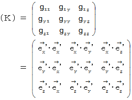 曲線座標系の計量テンソル ( 共変計量テンソル ) の表現行列 :