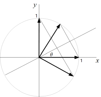 基底 ey ベクトル は、ベクトル( sin 2θ ,−cos 2θ )に移されます。
