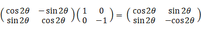 を鏡として鏡像を得るにはどんな鏡像テンソルを用いればいいでしょうか?それには、まず x 軸を鏡として第1象限にある図形を第4象限に写して左右反転し、それを原点を中心に反時計回りに 2θ ラジアン回転させればいいのです。