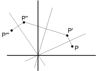 以上より、点P" は点Pを原点を中心に反時計回りに 2( θ2−θ1 )ラジアン回転させるのと同じであることが分かる。