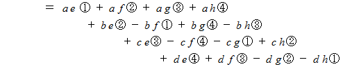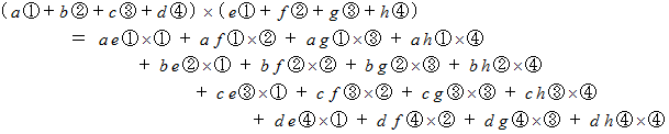 この式がベクトルの内積・外積の起源となりました。 その理由は、 四元数を用いてベクトルを表現して演算を行う時に登場してくるからです。