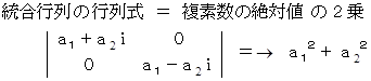 統合行列の第1行第1列の項が実際の複素数を示し、第2行第2列の項はそれに共役な複素数を示している。