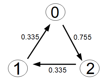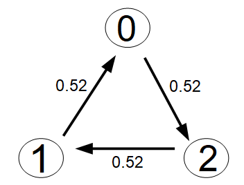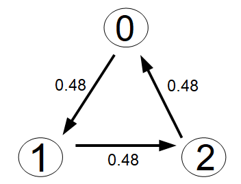 0.245×0.665×0.665 =→ 0.108345125 ← 反時計回り1周の確率の方が大きい