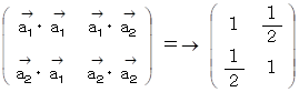 が作るベクトル空間の 計量テンソル は次のようになる。