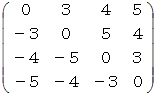 この表を次の行列で表します。 このような行列を 「 有向有距離_隣接行列 」 と言うことにしましょう。