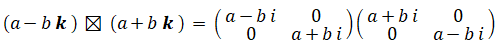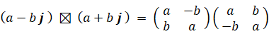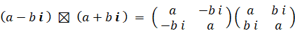 共役な四元数どうしの演算は次のようになります。
