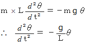 の場合の 「 単振動の2階微分方程式 」 ですから、 この単振り子は単振動することが解ります。 ちなみに、 周期は次のようになります。