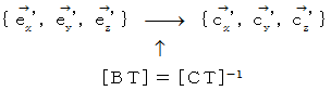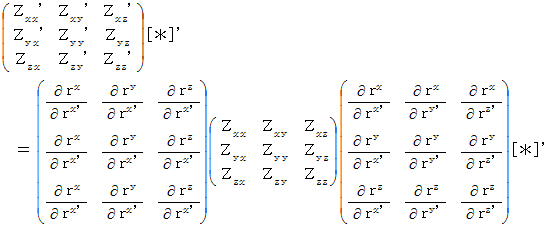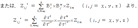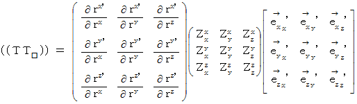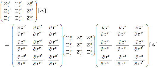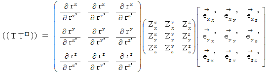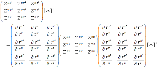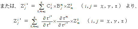 まず、 思い出してください。 1つの斜交直線座標系での、 量場的テンソルの表示方法の比較は、 次の変換式に従います。