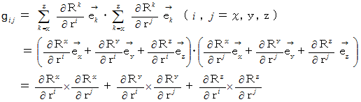 したがって、 ベクトルの大きさの2乗は、 曲線座標系では次のように表されます。