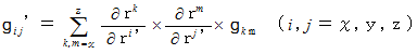 計量テンソルの共変テンソル表示の座標変換式 :