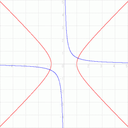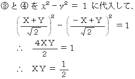 = 1 ) を座標原点を中心にして反時計回りに45度回転させると青色になるが、 その曲線の方程式を示しなさい。