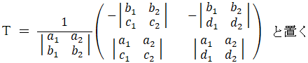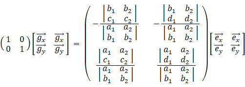 というわけで、斜交座標A から 斜交座標B への基底変換は次のように表される。