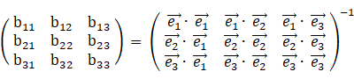 斜交直線座標系におけるヤコビ行列とは、正規直交座標系から斜交直線座標系への基底変換テンソルの表現行列のことであり、正規直交座標系から斜交直線座標系への座標変換テンソルの表現行列の逆行列です。