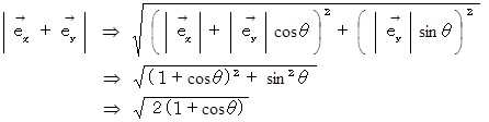 (1) 2次元直交座標における基底ベクトルの和と差の大きさ