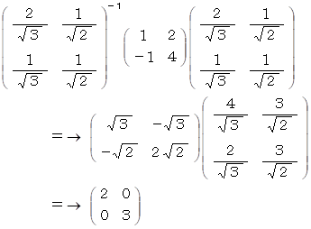 したがって、 それぞれの大きさが 1 の固有ベクトルの座標変換は次のようになります。