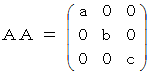 「 対角行列 」を表現行列に持つ演算テンソルは、 ベクトルを3つの基底方向にそれぞれ拡大縮小させます。 たとえば、 AA のような対角行列を表現行列に持つ演算テンソルは、 ベクトルを、 x 軸方向に a 倍し、 y 軸方向に b 倍し、 z 軸方向に c 倍します。