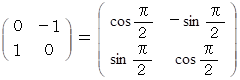 を表現行列とする演算テンソルは、 ベクトルを θ ラジアン反時計回りに回転させる。
