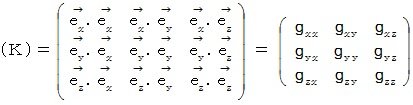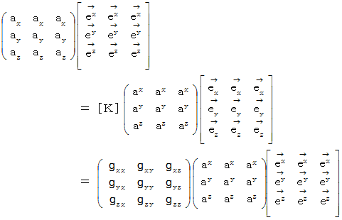 は、 共変基底表示( 反変ベクトル表示 )から反変基底表示( 共変ベクトル表示 )への座標変換テンソル