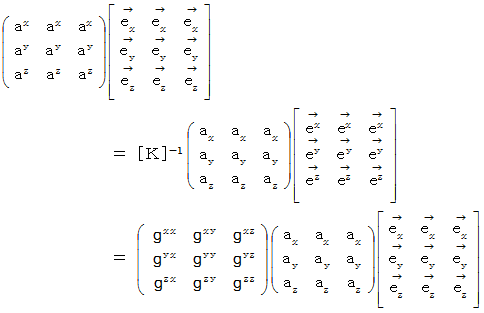 これは、 次のように書くことができます。 共変ベクトル表示から反変ベクトル表示への変換式です。