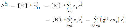 この逆の、 共変ベクトル表示から反変ベクトル表示への変換式は次のようになります。