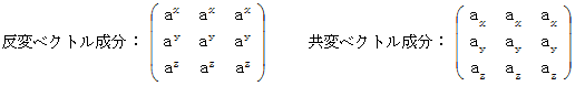 反変ベクトル成分と共変ベクトル成分とを、 次のように表すことにします。