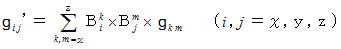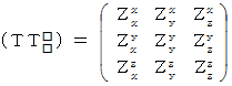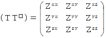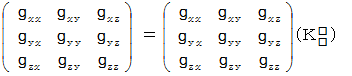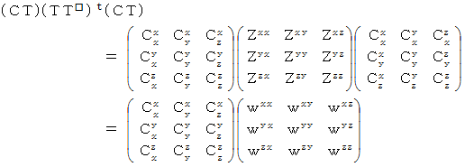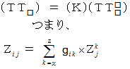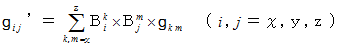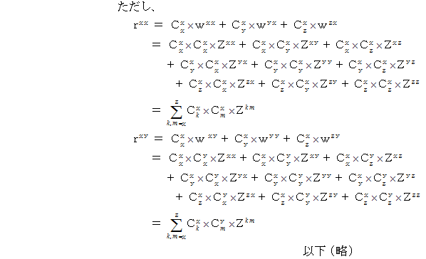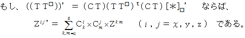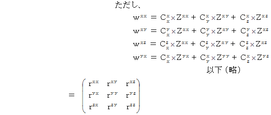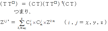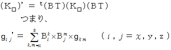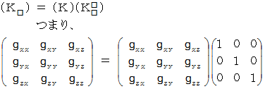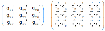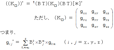 同様にして、 変換後の座標系の計量行列の9個の要素は、 変換前の計量行列の要素を用いて、 次の1行で表されることがわかります。