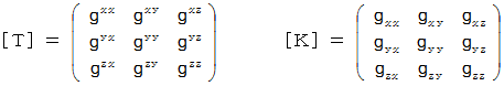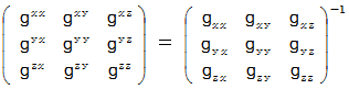 計量テンソルの 共変テンソル表示の表現行列 と 反変テンソル表示の表現行列とは、 互いに逆行列の関係になっている。