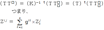 の表現行列の逆行列ですから、 次の式が成り立ちます。