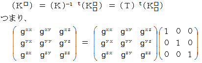 反変ベクトル表示から共変ベクトル表示への変換式 :