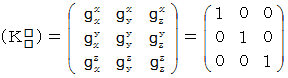 つまり、 計量テンソルの混合テンソル表示の表現行列は、 単位行列です。