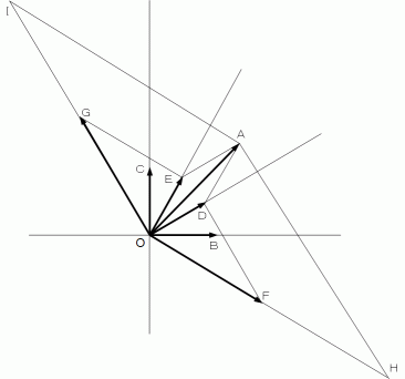 が作るベクトル空間があり、2次元斜交座標を用いて表します。