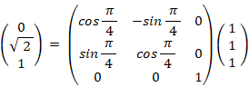 その例として、写像 ( 1, 1, 1 ) → ( 0, root(2), 1 ) を見て見ましょう。