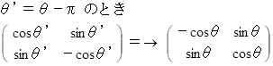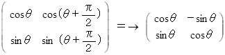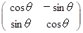 という表現行列を持つ演算テンソルは、 ベクトルを反時計回りに θ ラジアン回転させる写像を担います。