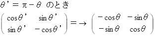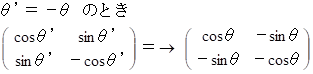 という表現行列を持つ演算テンソルは、 ベクトルを直線 y = { tan ( θ/2 ) } x に対して鏡像になるように移動させる写像を担います。※ 参照: 大学生のための数学 > 線形代数学 > 鏡像テンソル