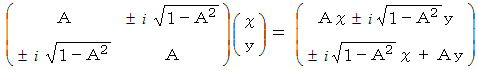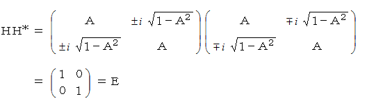 ユニタリー行列は、 直交行列を複素数に拡大したものです。 ユニタリー行列の典型例は、 次のように表されます。