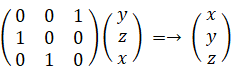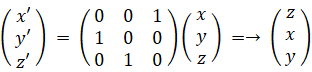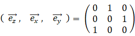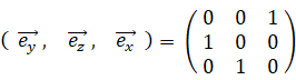 y 軸を中心に90°右ネジ方向に回転させると、