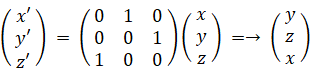 以上の3通りありますが、変換前と変換後がすべて同じなので、これらを等しいものとして、次の式で回転による変換を表すことにします。